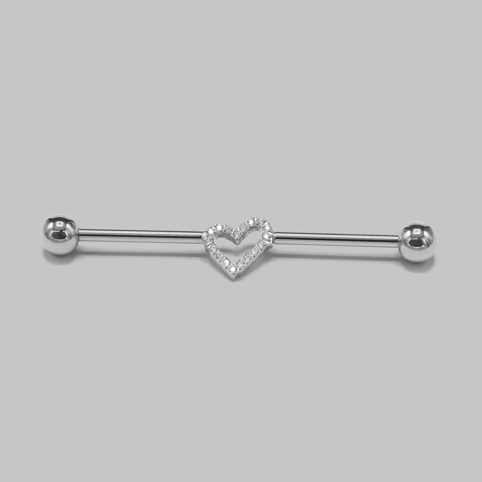 Industrial Barbell Set CZ Paved Heart in Silver – Titanium